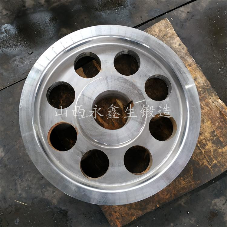 【產品優勢】:軌道輪鍛件產品表面外觀整潔,加工余量小,減少了材料的浪費達到節約成本。